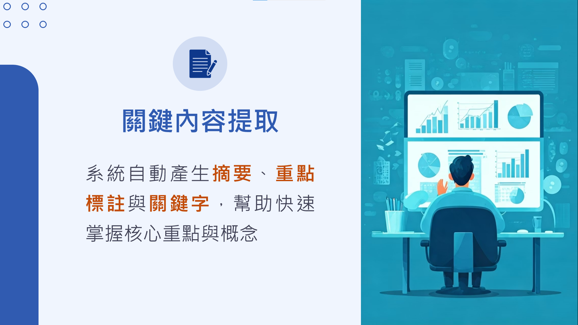 01 建立Google NotebookLM 新筆記本02 蒐集並上傳相關資料 03 AI 自動解析與內容整理 04 Google NotebookLM與 AI 的互動對話 05 Audio Overview 語音摘要功能 06 延伸學習、問題討論 |