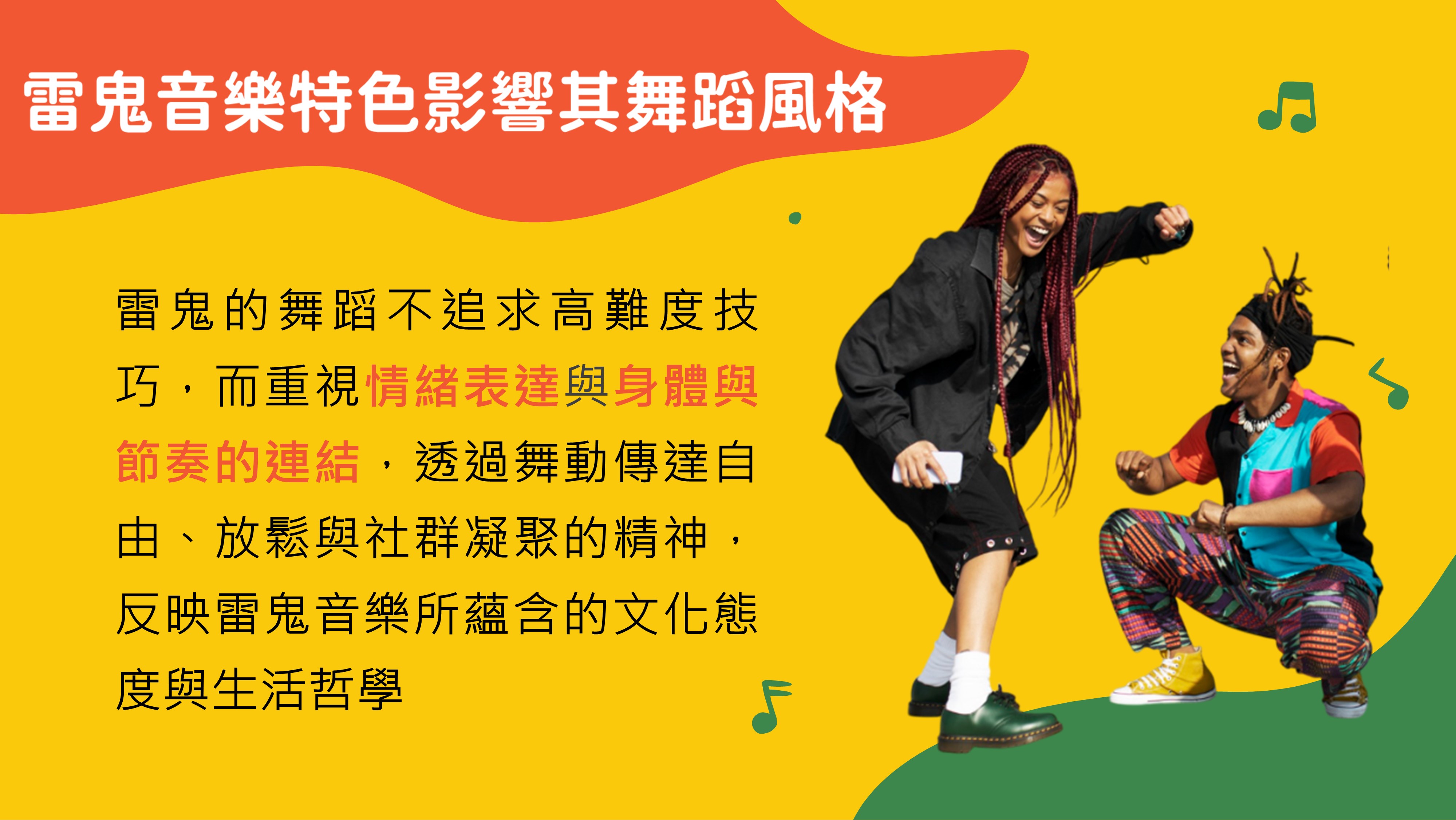 本課程以雷鬼音樂為主題,從其起源、文化背景與音樂特色出發,引導學生理解音樂與社會、歷史及文化之間的關聯,並透過全球化視角認識多元文化的交流與影響,培養跨文化理解能力。