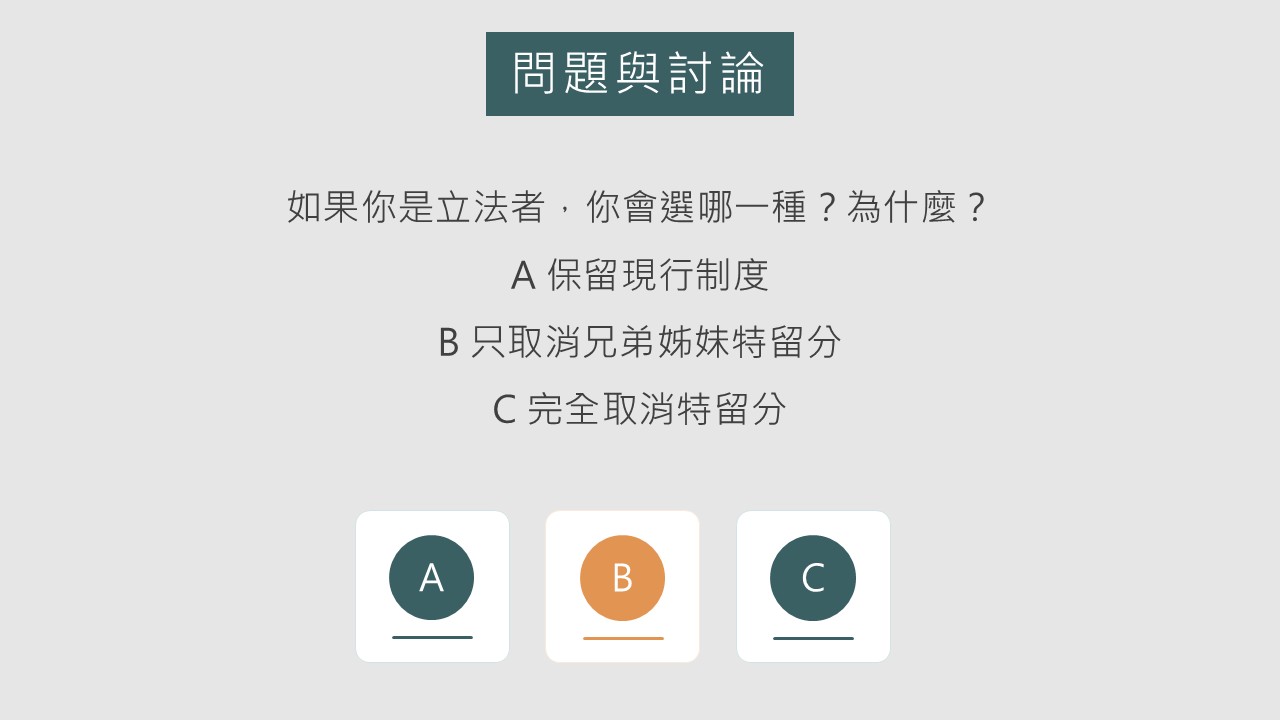 ● 討論教學法:引導學生思考遺產分配與家庭公平問題。