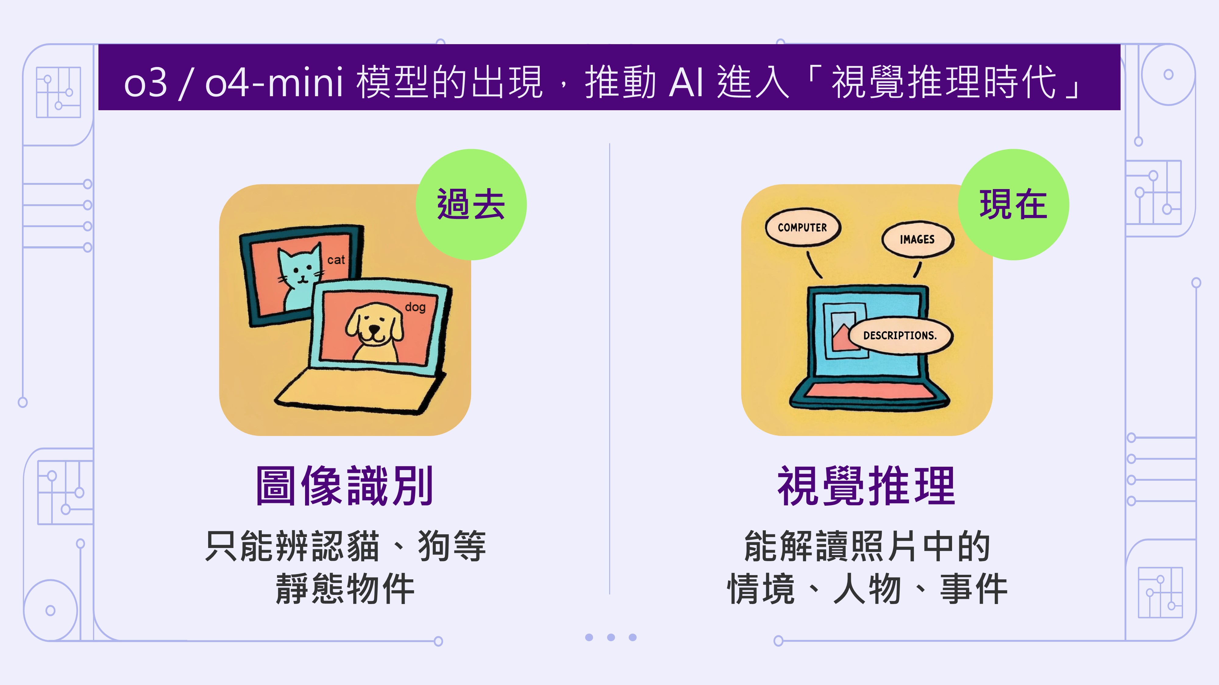 AI 不再只是「看見圖」,而是能真正「看懂圖」!從辨認物件到理解情境、推理因果,它像多了一雙智慧眼睛,能分析作業、解讀圖表,甚至預測風險。這份簡報將帶你認識最新的視覺推理突破,看看 AI 如何一步步走向更聰明、更貼近人類思考的未來
