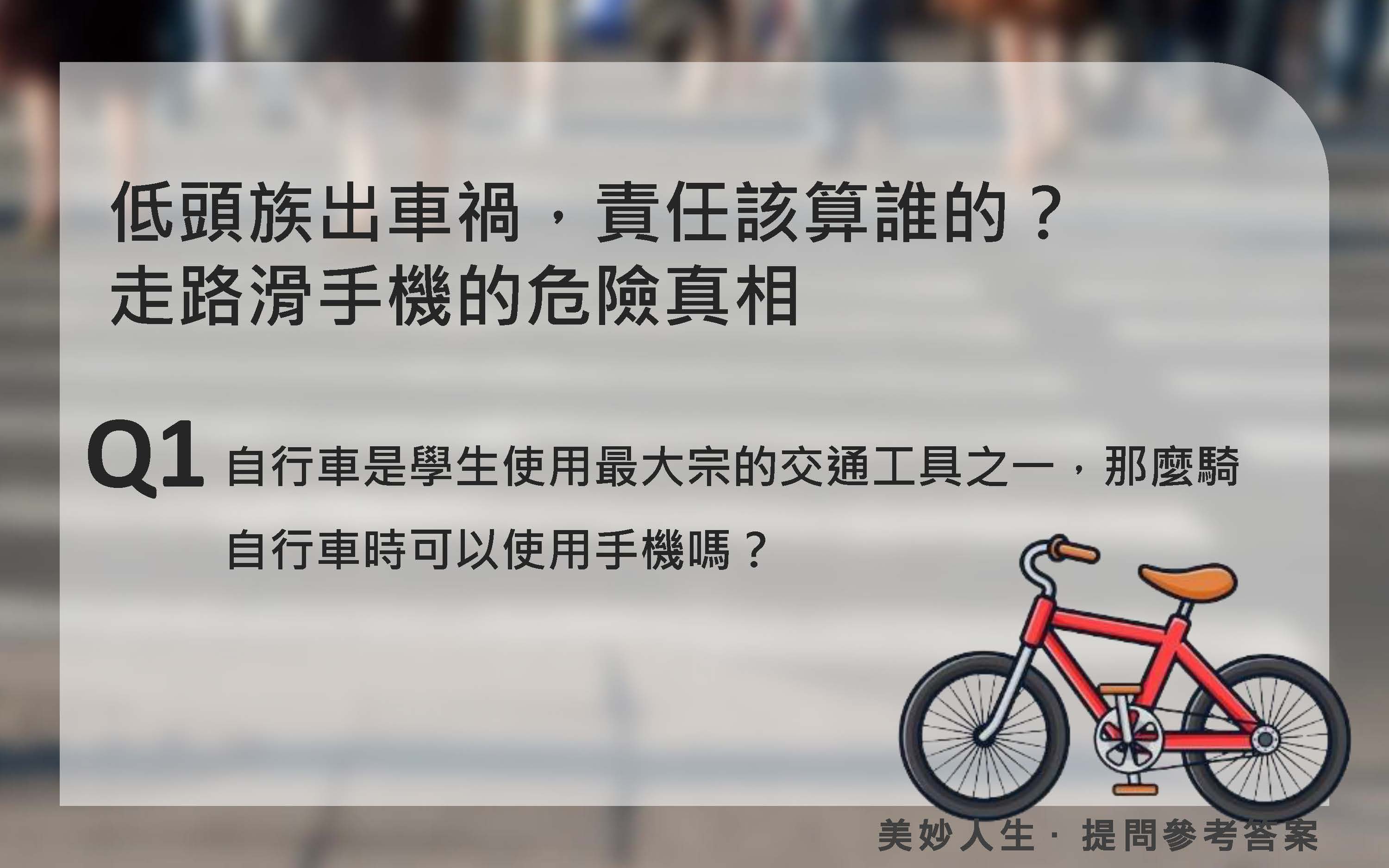 「教育探勘」專欄教案分享:1.以不同角度分析交通違規檢舉案例,理解比例原則的運用並培養理性判斷與與溝通協調的能力。 「美妙人生」專欄提問參考答案: 1.瞭解自行車駕駛用路安全 。 2.低頭族相應法規與交通號誌設計。 |