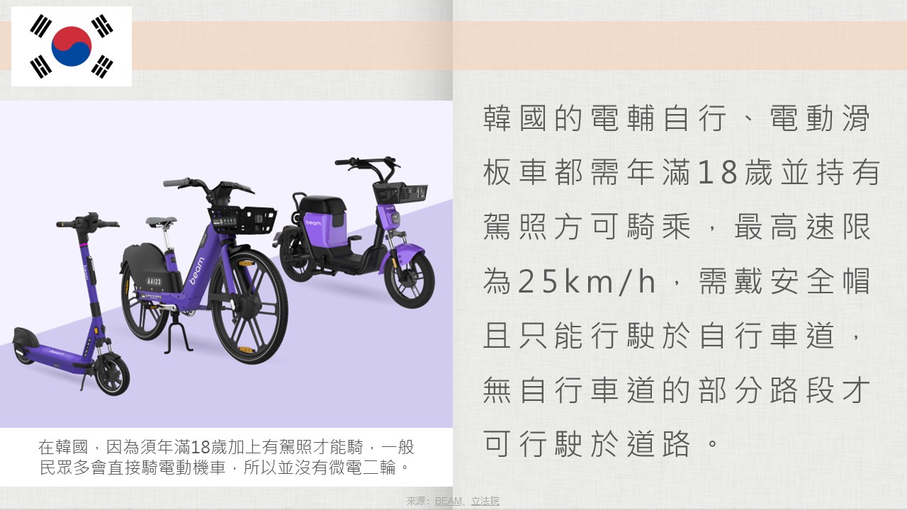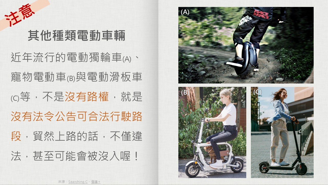 ● 比較教學法:比較臺灣與他國電動載具管理制度差異。
