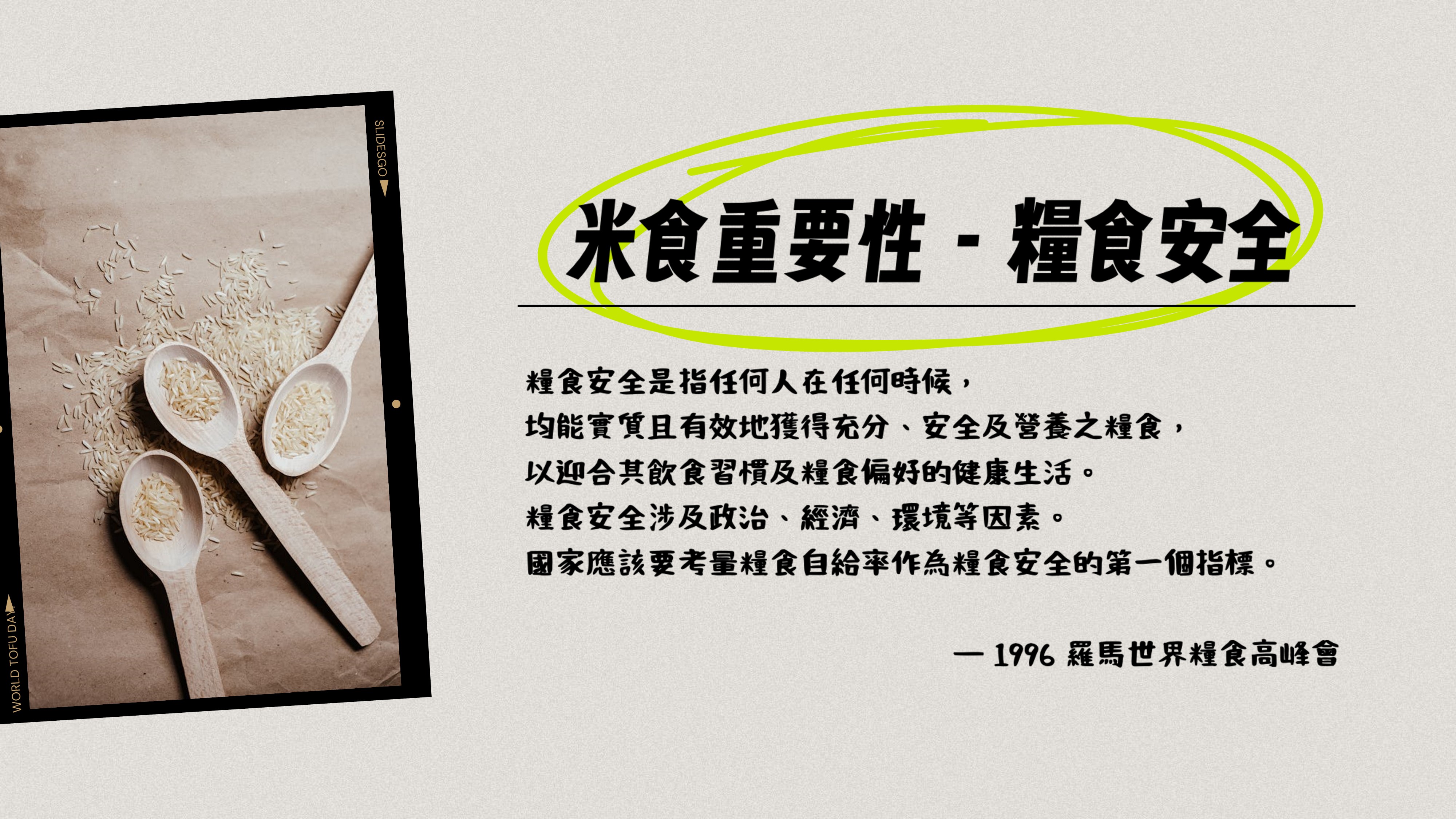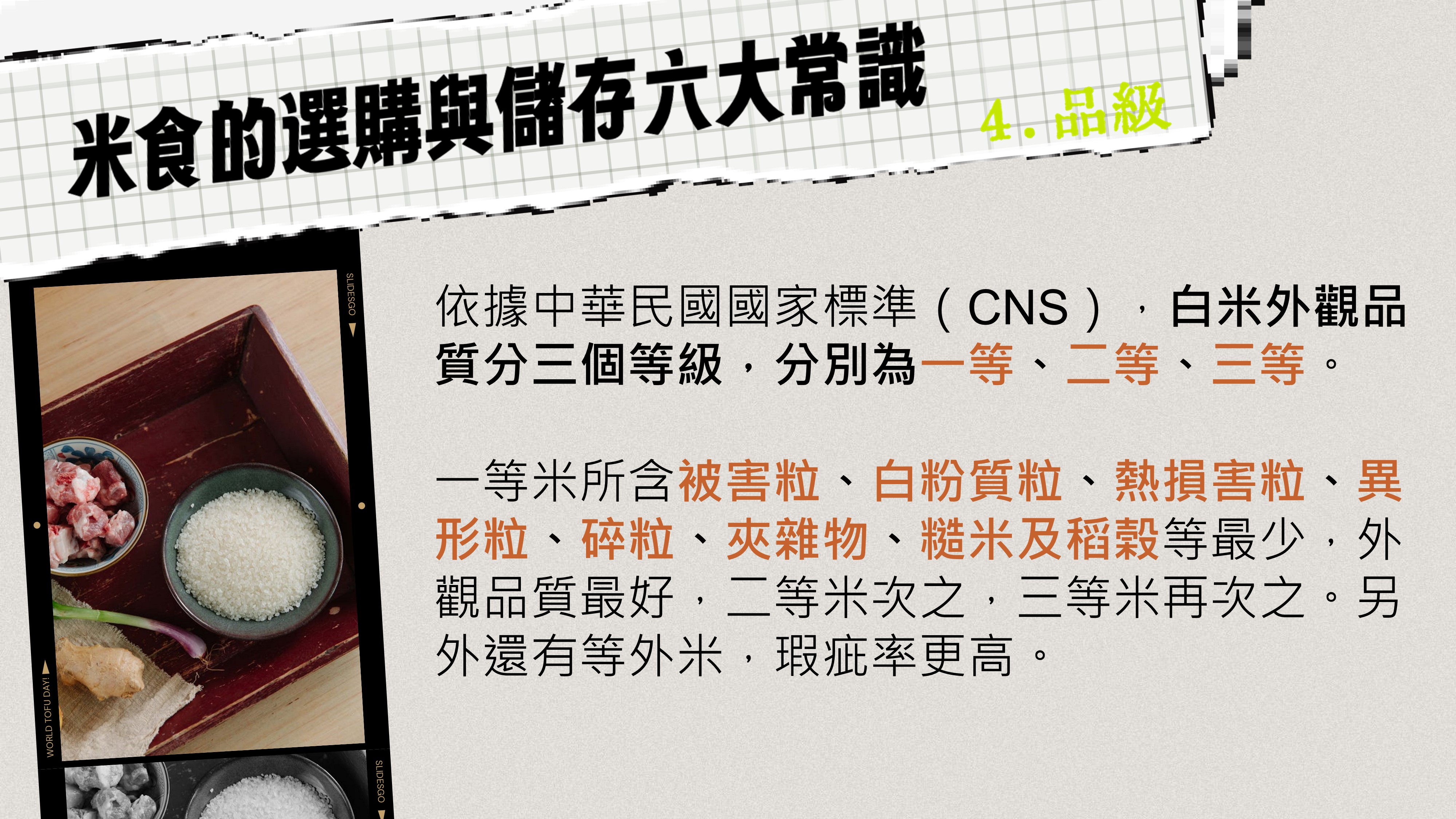 吃飯看似平凡,其實藏著很多小祕密,從挑選好米、掌握烹煮技巧,到細細品味飯香,每一步都藏著小知識與大驚喜。透過這份簡報,我們一起探索臺灣米的魅力,學會選、煮、吃,帶你進入米飯的世界,教你如何「好好吃飯」。