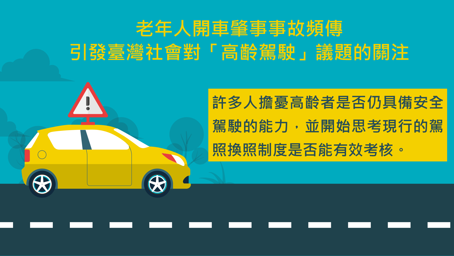 隨著臺灣進入高齡化社會,高齡駕駛所引發的交通事故逐漸成為社會關注的焦點。近年來多起重大事件,凸顯出現行駕照換照制度與交通安全政策的挑戰,也帶來「交通安全」與「長者行的需求」之間的矛盾。透過本課程,學生將從實際案例出發,理解高齡駕駛的社會議題,並借鏡國際經驗,思考政策修正的方向與可能爭議,以培養公共議題分析能力與同理心,進而認識「個人安全」與「社會責任」的平衡。