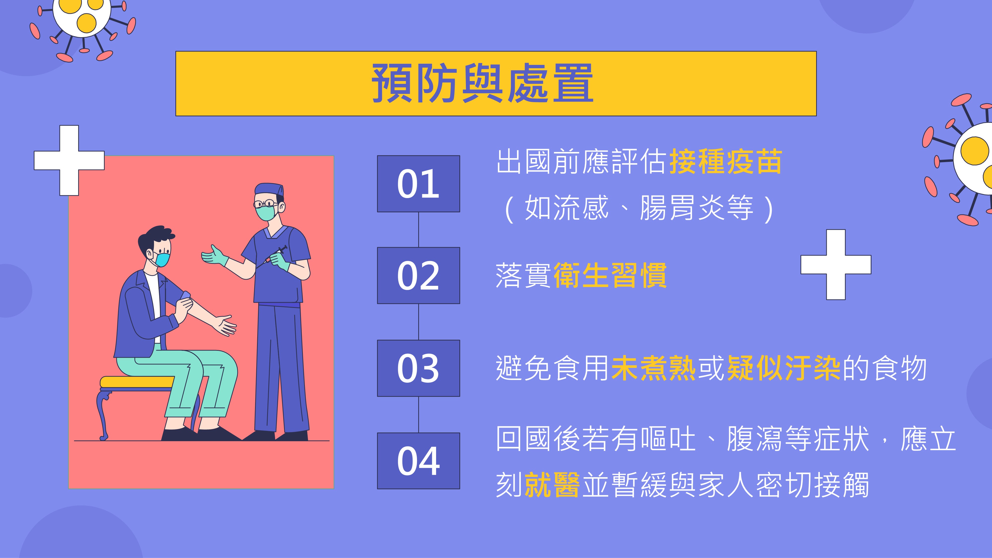 4.建立正確衛生習慣與防疫觀念,如洗手與環境消毒。