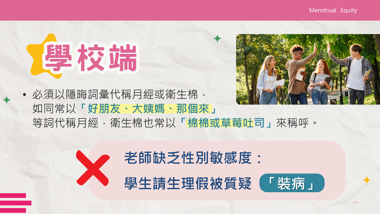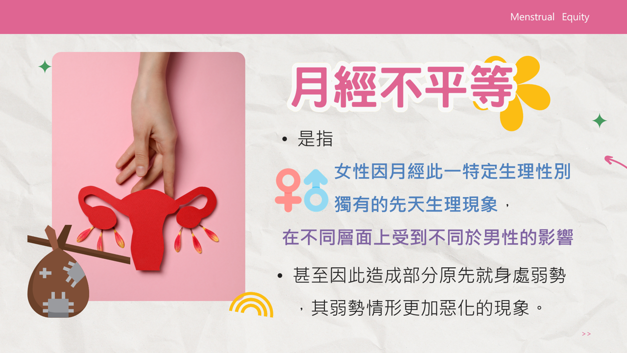 介紹月經平權的理念與現況,說明月經迷思、社會污名與月經貧窮如何影響教育、就業與身心健康,強調月經並非性別私事,而是公共健康與人權議題,培養學生同理心、性別尊重與社會責任,推動友善與平權的校園文化。
