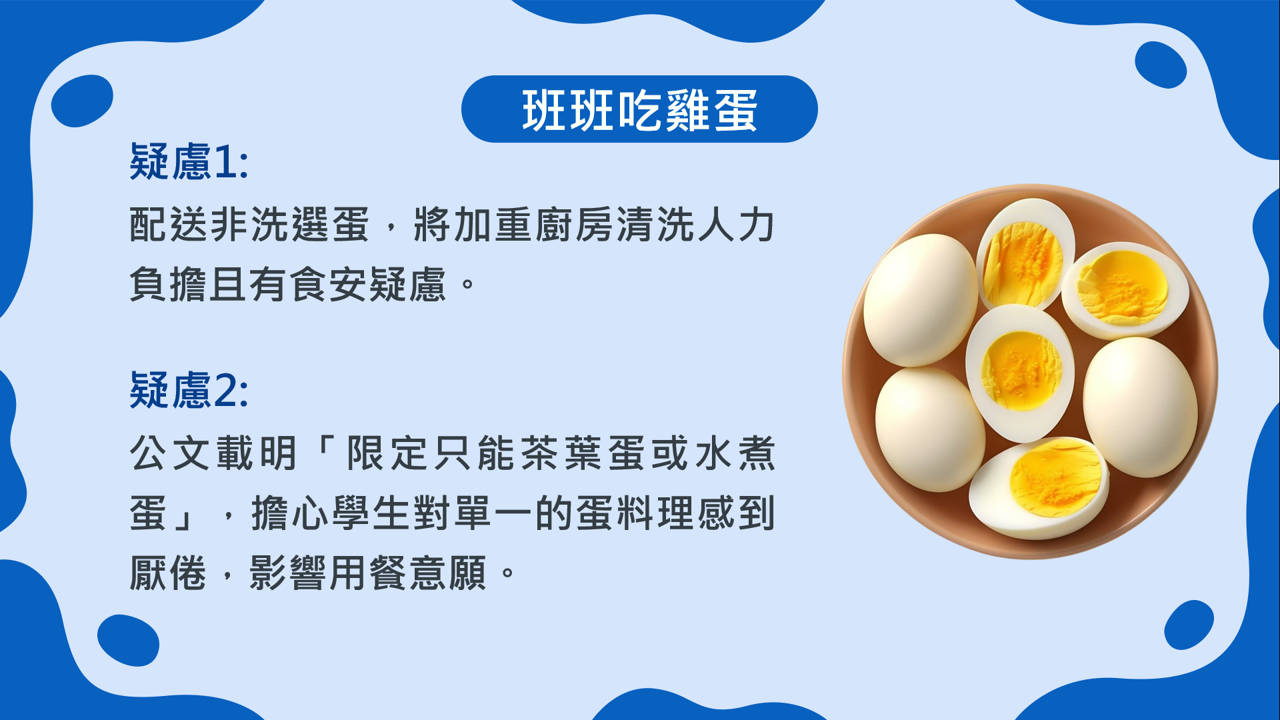 本簡報探討近年政府推動的「班班喝鮮奶」、「班班吃石斑」及「班班吃雞蛋」等政策,揭示其雖立意良善,卻因欠缺配套措施與忽視校園實際需求,反造成學校運作困擾、行政負擔與資源浪費。結合時事議題與教育現場,透過具體案例呈現政策與執行落差,引發對教育自主與政府治理的反思。內容結構清晰,資料豐富,適合作為公民、教育或食農議題探討的教材。
