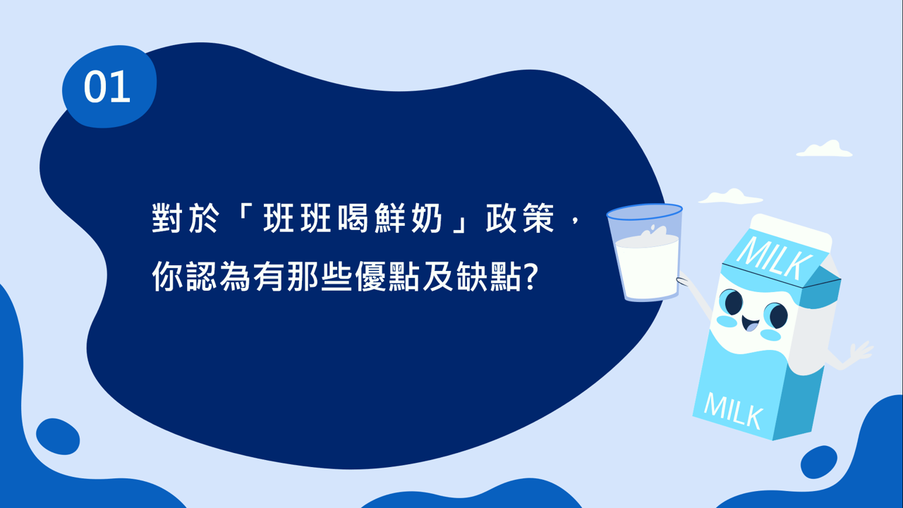 學習政府推動「班班喝鮮奶」、「班班吃石斑」及「班班吃雞蛋」等政策時事議題,教育自主與政府治理的反思