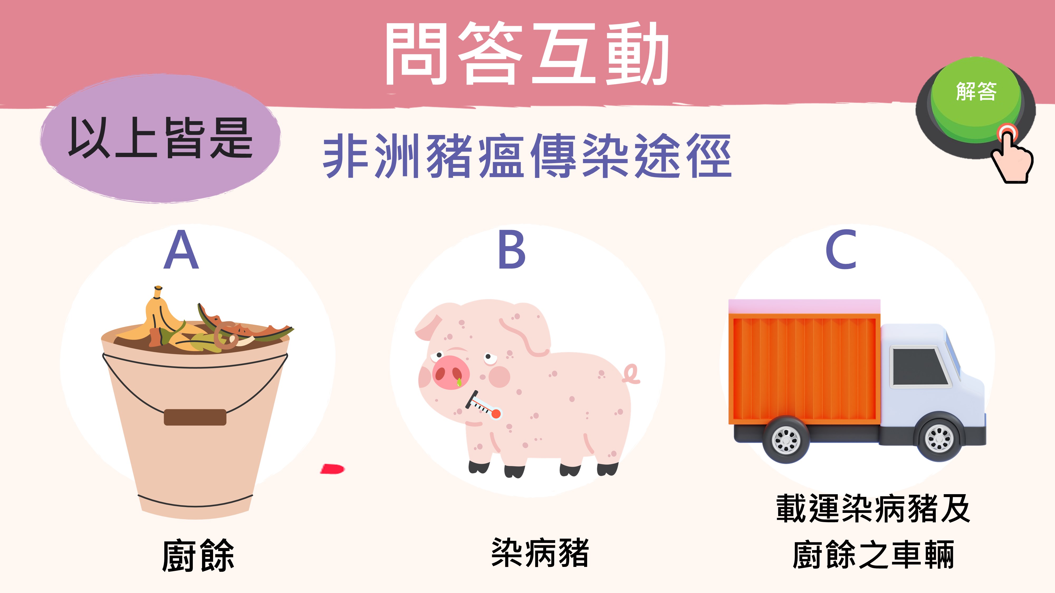 重點1:什麼是非洲豬瘟重點2:臺灣發生始末 重點3:對臺灣影響 重點4:未來防堵方式 |