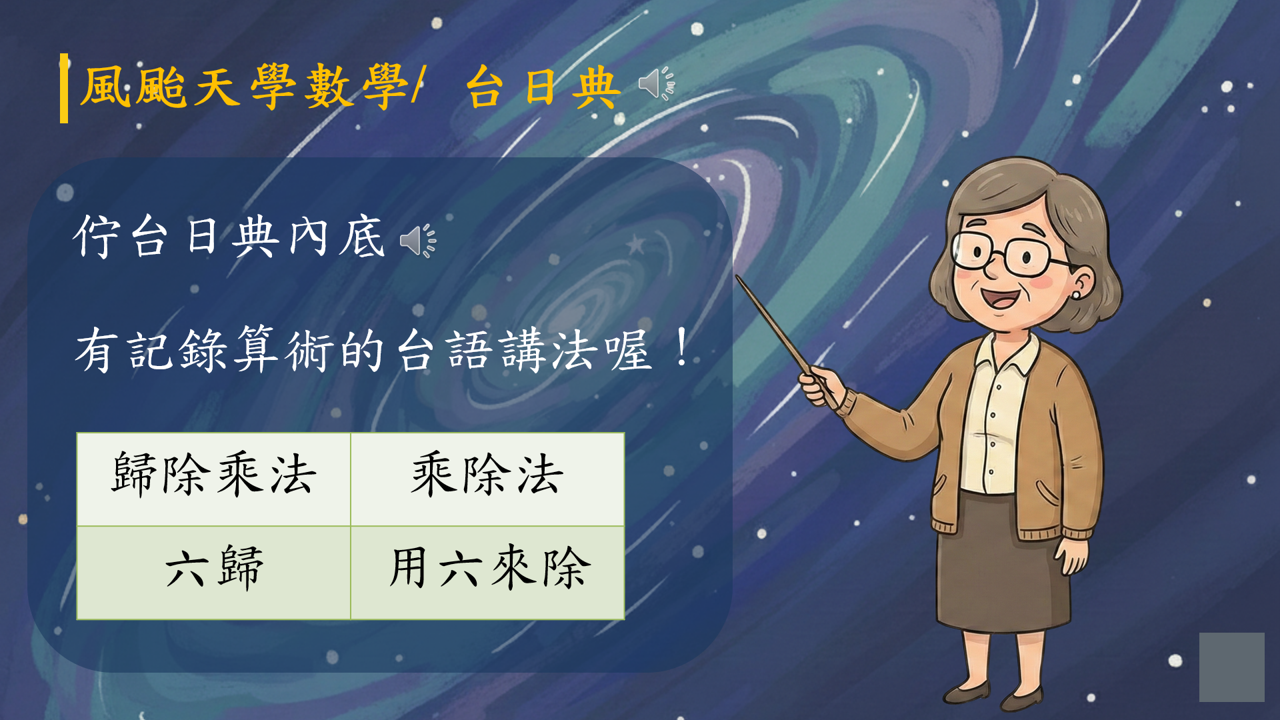本簡報以「風颱天」生活情境為引子,結合台語詞彙、語音、變調與漢字拆解,將語言學習自然融入生活經驗。透過幽默比喻、文字遊戲與跨域的「文字數學」設計,引導學生從日常用語理解台語結構與文化脈絡,適合用於課堂引起動機、討論語言差異,培養學生對母語與在地文化的觀察力與學習興趣。