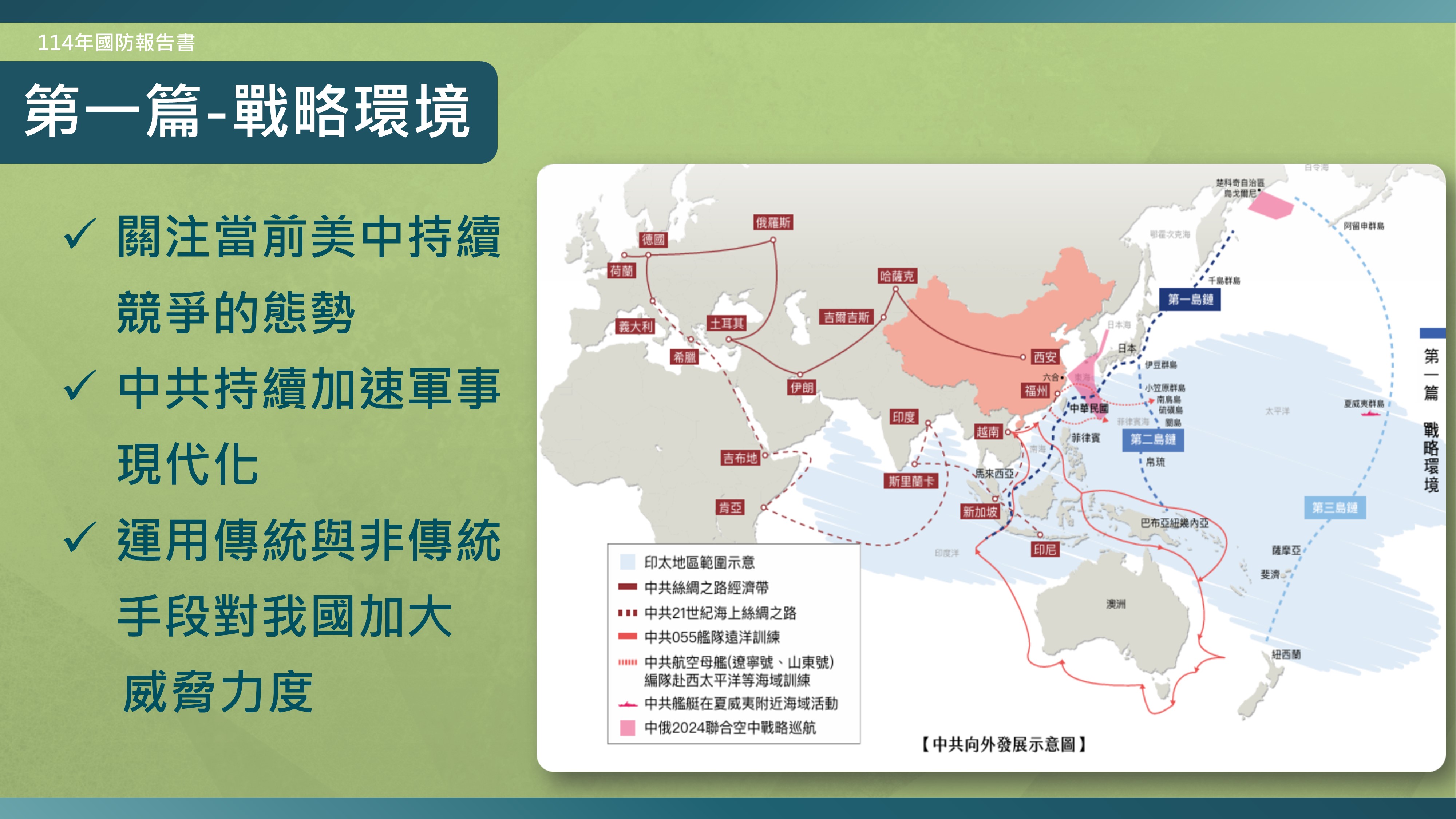 1.清楚說明美中競逐與中共軍事壓力的情勢變化