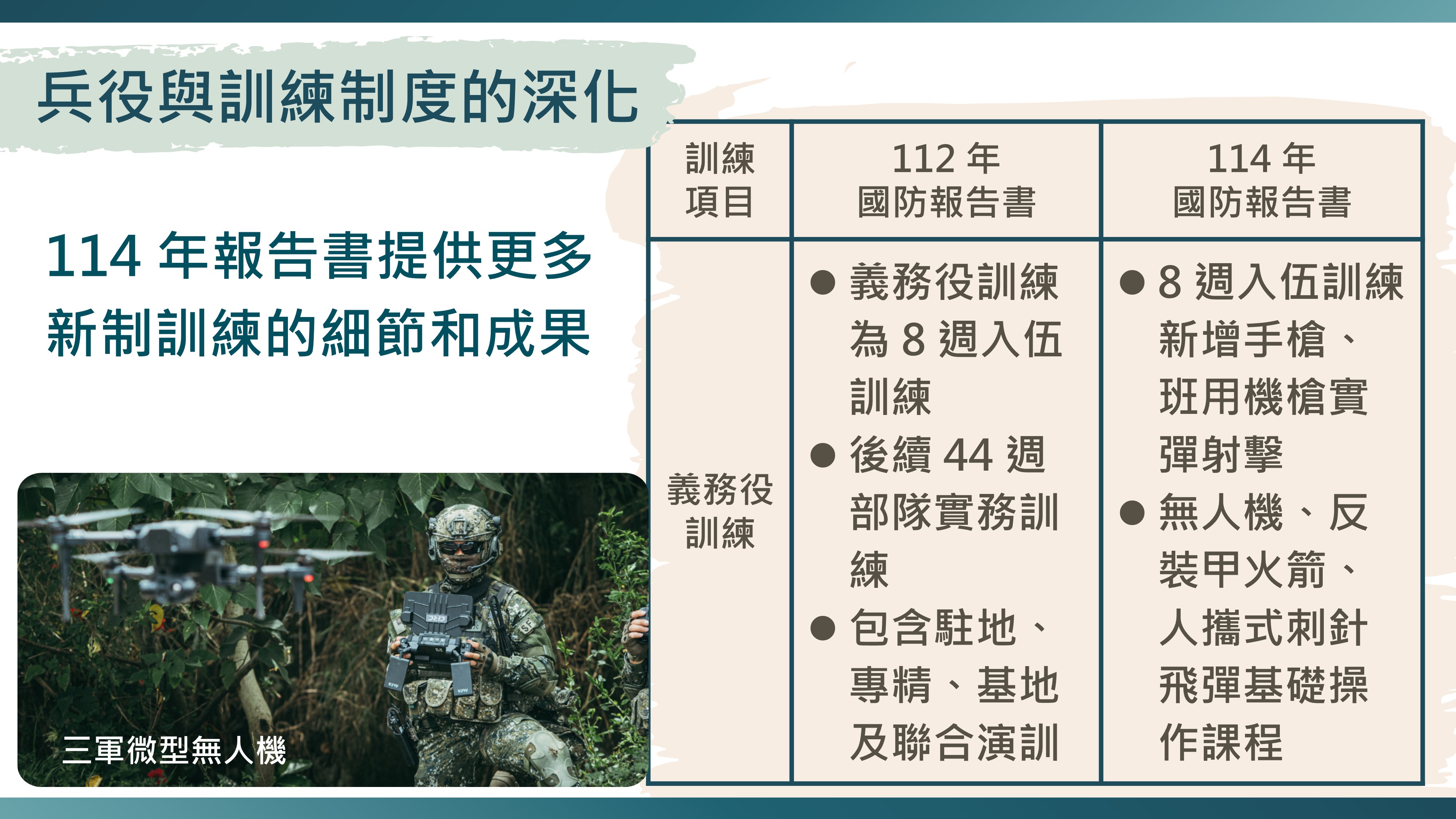 以「敏捷韌性國軍 堅定捍衛國家」為核心,強調國防不只在戰場,更延伸到社會與人民,呈現我國面對威脅時的整體防衛思維。