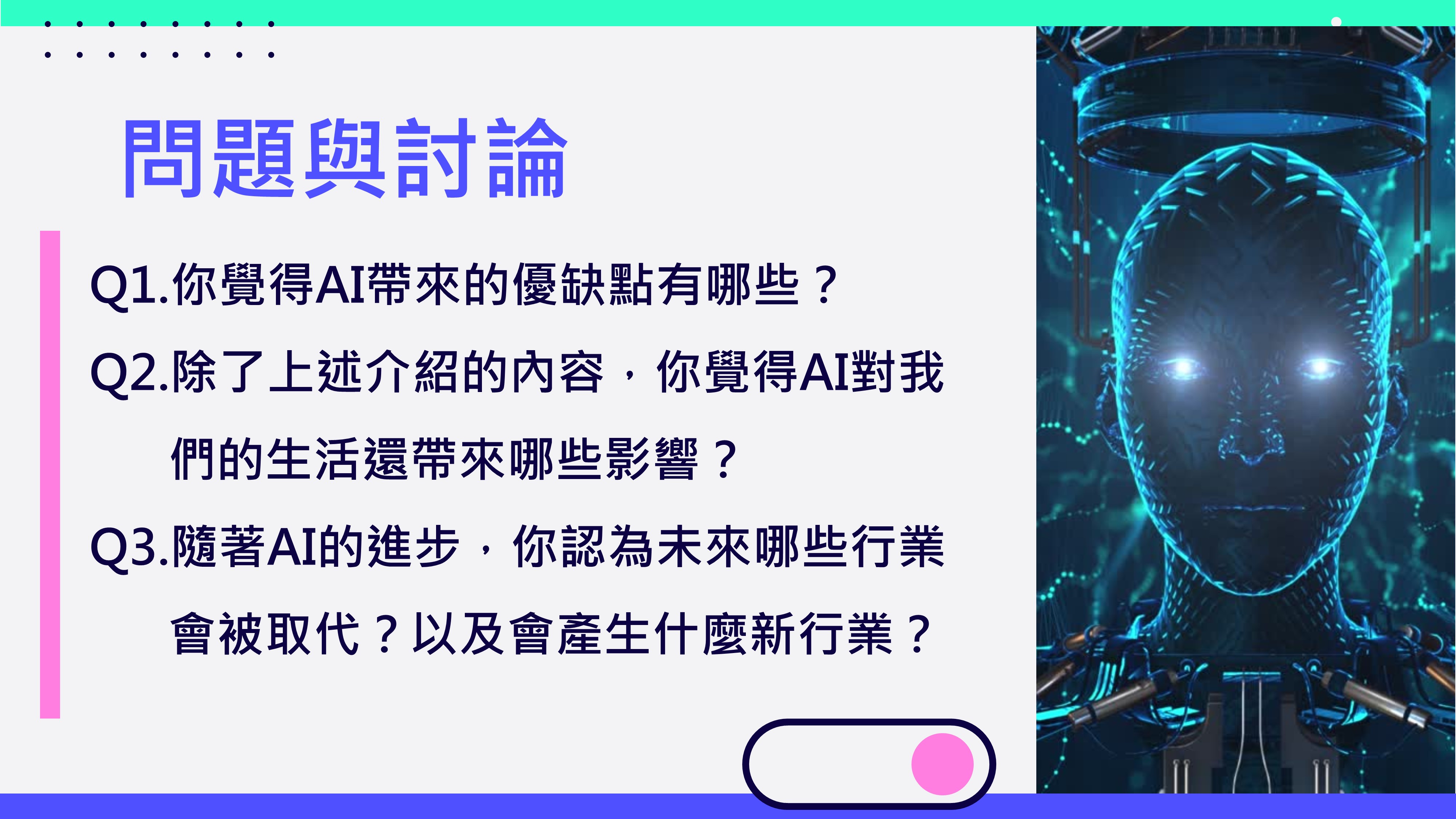 人工智慧近年不僅影響我們的生活,也成為當今科技發展的熱門趨勢,本次主題簡報將介紹AI在我們的生活中的9種類型,展示出它如何改變我們的生活方式和工作方式。